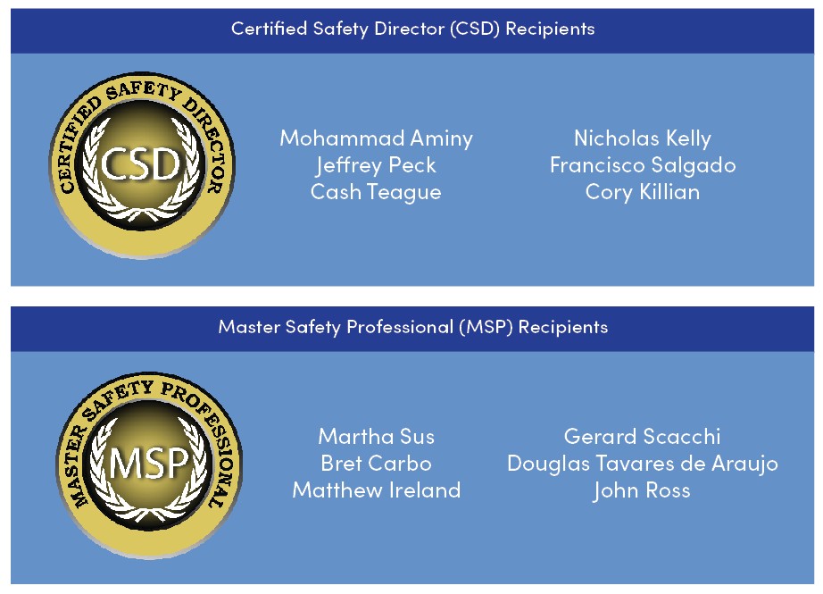 These certificants have demonstrated their dedication to maintaining high standards of professional excellence. Their achievement reflects many hours of study, preparation, and real-world application of safety principles that help ensure safe and productive workplaces.